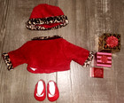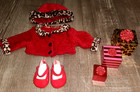 American Girl Bitty Baby Chocolate Cherry Outfit Sweater Hat Shoes Stackable Box