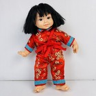 Vintage China Dolls Co. 1996 RARE Asian Oriental Baby Girl Doll - Black Hair, Red Fit. Pre owned, please see photos for all details. Legs from knees down can turn, inwards and outwards (see photos of this). Measures 350mm long when laid flat.