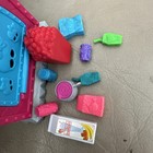 The Monster High Social Spots Student Lounge Vending Machine with Food is a licensed reproduction by Mattel, featuring a mixed-furniture design with a vending machine and foosball table included in the set. Made of plastic material in multicolor, this 12-inch compatible doll size furniture set is a part of the Monster High franchise, manufactured in the 2010-2019 time period. Perfect for Monster High enthusiasts looking to add unique and fun pieces to their dollhouse collection.