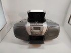 Tested and works. The cd player and radio both work perfect. With a sleek design and headphone jack feature, this boombox is perfect for listening to your favorite music on-the-go.
