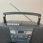 This is a Sony CFD-E90 Boombox CD Radio Cassette-Corder. It is in very good condition. Everything works except the CD player. It spins but no sound. Needs some cleaning. Selling AS IS. Please see the photos to verify condition. Will ship quickly.