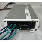 Majestic MAJ400X4M 4-channel marine amplifier features a rugged silver heat sink design with white end caps, engineered for reliable performance in outdoor or marine environments. This versatile amp includes adjustable high-pass and low-pass filters, gain controls, and a frequency range of 50Hz to 500Hz. It supports both 2-channel and 4-channel input modes with built-in RCA connections and a dedicated power terminal block. The compact footprint and integrated mounting tabs make it easy to install in tight spaces while providing a significant audio boost to your speaker system. Preowned, good condition. Has signs of wear. Please see photos for reference. Smoke free home.