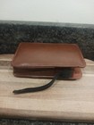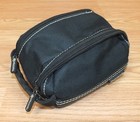 Classic compact design—ideal for travel, storage, and on-the-go protection. Material: Black synthetic/real leather exterior with sturdy stitching. No major flaws noted and stitching in good shape.
