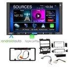 The tailored dash kit ensures a smooth installation, maintaining the factory aesthetic. This bundle includes a wiring harness and antenna adapter for a hassle-free setup. Apple CarPlay and Android Auto compatible.