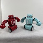 The product is a set of two Robot Knockout FOA Schwartz Pow The Hero robots for close-range wireless fighting. These robots are compatible with other robots. They are designed for battling and are part of the Consumer Electronics category. Remote is not available so selling as part. They both power on and make sound.