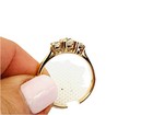 The ring features a round three natural diamonds 1ct TW is marked set in a beautiful 14k solid yellow gold band, making it a luxurious and elegant choice for any bride-to-be.