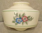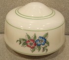 1930 ART DECO CUSTARD Vaseline GLASS CEILING LIGHT SHADE w/GREEN STRIPES FLOWERS