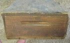It is 27 3/8" x 8 1/4" x 3 7/8" high. It has the Original Hardware and has Recessed Finger Holds on Both End. The Chest and Label are in As Pictured Condition.