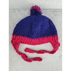 Handmade Toddler Child Winter Hat Knit Pom Pom Ear Flaps Blue Red