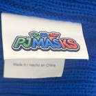 This is a preowned P J Masks pom pom beanie hat for youth sizes 2T-5T. It is in very good condition. It features an embroidered Catboy, Owlette, and Gekko from the animated series. Made by Frog Box in China and is machine washable.
