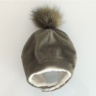 Stonz Fleece Trapper Hat Faux Fur Pom 6-18 Months Olive Green Sherpa Lined