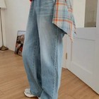 New Checkered Zipper Denim Pants with Adjustable Scarf