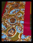 Printemps Marron Lines With Green Gold Blue Medallion Silk Scarf. 36” X 36”.