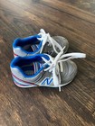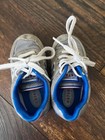 Model: New Balance baby low-top athletic running sneakers. Type: Unisex kids athletic running and casual sneakers. Pre-owned New Balance baby running shoes with heavy wear from frequent use.