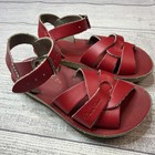 Salt Water Sun San Swimmer Red Leather Sandals Buckle Ankle Strap Ships fast from smoke free home Kids Toddler Size 9 Good pre-owned condition Please see all photos for most accurate condition & details. Woven leather upper Spongy urethane sole Rust-proof buckles Water-friendly Hand washable Free shipping