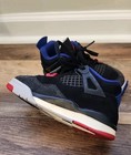 Black suede upper & hook & loop closures. Fabric in blues camo print. To get a better idea of what our opinions on conditions are, here is a condition key that gives a more detailed explanation of how used an item is.