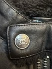 This koala KIK faux leather black jacket is adorable. It has a faux fur collar and full front zip. It also has a skull and crossbones on the snap the zipper and the back of the jacket.
