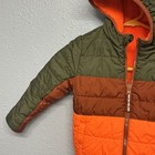 The Old Navy Boys Retro Color Block Puffer Jacket in size 2T is a stylish and practical choice for young boys during the winter and fall seasons. Made from 100% polyester with polyester insulation, this full-zip jacket features a vibrant orange color with a zipper accent. It has long sleeves and a hood for added warmth, making it perfect for casual occasions and outdoor activities like walking. Easy to care for with machine washable instructions, this puffer jacket from Old Navy is a must-have for any boy's wardrobe. Bin:coat