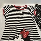 The Disney Store Minnie Mouse Girls 2 Piece Set includes a dress and leggings featuring a polka dot pattern with Minnie Mouse character accents. The pullover closure and short sleeves make it easy to put on and comfortable for all seasons. Made from 100% cotton, this black, white, and red outfit set is perfect for young girls who love cartoon and TV characters, specifically Disney's Minnie Mouse. The set also includes a bow, rhinestone, and sparkly Minnie Mouse details, adding a fun and playful touch to the overall design.