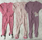 Lot of "5" total pieces of Baby Girl cotton footed one piece sleeper pajama lot in sizes 0-3 months and 3 months. Baby Girl Sleeper Pajamas 0-3 Months and 3 Months. 3 pieces size 0-3 months. 2 pieces size 3 months.