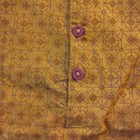 Gold & Yellow Waistcoat. Fully Lined in Yellow. Yellow Trim. 3 Yellow Fabric Wrapped Buttons. Matching Faux Pocket Square with Yellow Trim in Pocket. Gold & Cream/White Embroidery.