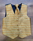 Boys Suit Vest & Tie Set 3T Gold Orange Striped Metallic Dressy Button Up