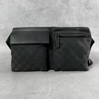 GUCCI Belt Bag Waist Bag Bodybag. The black GG pattern canvas gives it a refined and stylish look. Canvas / Leather. There is no corner wear, and the interior is clean.