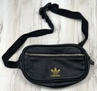 ADIDAS Black Pebbled Vegan Leather Fanny Pack BELT BAG Gold Logo Embroidery EUC Excellent pre-owned condition. Please carefully inspect photos for full condition and item details.
