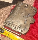 Vintage Award Design Medals Inc. solid brass belt buckle featuring the Confederate States of America Great Seal. This oval-shaped buckle displays a detailed relief of George Washington on horseback, surrounded by a wreath and the text "The Confederate States of America: 22 February 1862" and "Deo Vindice". Crafted from heavy solid brass with a dark antiqued finish, it showcases intricate scrollwork around the border. A collectible piece of historical interest for enthusiasts of Civil War era memorabilia. Measurements: โข Width: 3.75" โข Height: 2.75" Item carefully inspected and described to the best of our ability. Fast shipping from Virginia. Feel free to ask any questions. #27