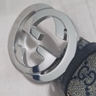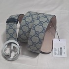 Authentic Gucci Monogram Blue Beige GG Belt Silver Buckle 32-34 IT 95CM