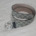 This Authentic Gucci Men's Dress Belt GG Supreme Logo Print in Beige and Blue is a luxurious and stylish accessory perfect for any classic or designer-inspired outfit. FITS 34-36 pants - IT 100CM Made of high-quality monogram leather with a 1.5-inch width and adjustable fit, this belt features the iconic Gucci buckle and logo accents. Crafted in Italy, this belt exudes sophistication and quality, making it a versatile and essential piece for any man's wardrobe. Ships Same Business Day:)