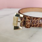 Uterque Brown Croc Embossed Leather Belt Size 85 (Fits 34) Made in Spain Gold