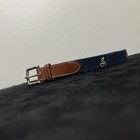 Peter Millar Belt Mens 38 Blue Golf Trophy Webbed Leather Brass Buckle Made USA