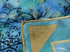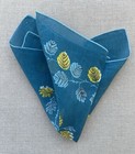 Vintage Leaf Design Aqua Handkerchief / Pocket Square Fine lightweight aqua blue woven fabric with a design of three tree branches and leaves with acorns in yellow, lighter blue, black and white. 14.25" x 14.5" Not labeled for fabric content, there are slight variations in the widths of the fibers in the weave, I believe it is linen. Has been hand washed and lightly pressed. Narrow hand rolled & stitched blue hems. Pre-owned vintage handkerchief/ pocket square in very good, clean condition. Photos were taken in natural sunlight, colors may appear slightly darker indoors. Please see all photos for details.