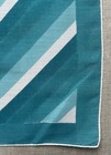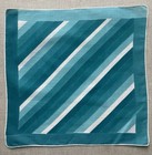 Vintage Aqua & White Handkerchief / Pocket Square Fine lightweight woven fabric with a modern diagonal stripe pattern of gradations of aqua blue and white. About 13" x 13.25 Not labeled for fabric content, I believe it is cotton. Has been hand washed and lightly pressed. Hand rolled & stitched narrow white hems. Pre-owned vintage handkerchief/ pocket square in very good, clean condition. Please see photos for details.