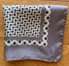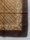 Vintage Silk Pocket Square Soft woven dark brown silk with a central paisley pattern in brown, gray and ocher tones. 2" dark brown borders with narrow stitched hems. About 17.5" x 17.25" Labeled: All Silk, Made in England, Dry Clean Only Pre-owned vintage silk pocket square in very good, clean condition. Please see all photos for details, photos were taken in natural sunlight.