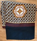 The Kkusebo Men’s Dress Silk Scarf is a vintage piece in excellent condition, featuring a geometric pattern in black, red, and gold. This multifunctional scarf is handmade and perfect for all seasons, whether it's winter, summer, or spring. Made from silk, it adds a touch of luxury and color to any outfit, making it a standout accessory for men who appreciate quality and style. 8 1/2”x 45”