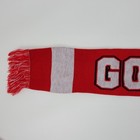 Cornell Hockey fan set includes a knit beanie and a matching fringe scarf. The beanie features a striped pattern in red, white, and black with an embroidered Cornell Hockey logo on the front and a solid black reversible interior. The scarf displays a bold "GO BIG RED" block letter design with white and red stripes and classic fringe ends. Both pieces are crafted from soft 100% acrylic knit, making them perfect for staying warm at Lynah Rink or around campus. Measurements: • Hat Height: 8.5" • Hat Width: 7.5" • Scarf Width: 6" • Scarf Length: 50"