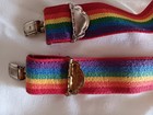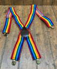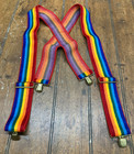 Vintage 70's 80's Rainbow Pride Elastic Clip Hardware Suspenders 2" x 32"