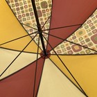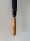 Vintage Aramis 46โ Travel Theme Umbrella Compass Accent Wood Look Handle Brown and orange Compass accent on handle Graphics have some lines, from wear/storage (see photo up close) Approx. 46" spread, measures 40" end to end Handle is still shrink wrapped