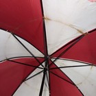 Great valentines gift ! Umbrella secures via STRAP and snap (around umbrella). Made in the 90s, sewn from 65% poly/35% cotton, with a sturdy wind resistant construction and a stylish wood hook handle for easy carrying.