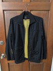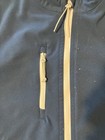 Pre-owned with clean structure, combining performance design and classic navy style. Full zip front elastic cuffs hooded pre-owned condition. Navy blue solid color sporty minimalist design. Nylon shell polyester fill lightweight warm construction.