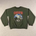 Vintage Obey Sweatshirt Mens Medium Green Wolf Graphic Crewneck Streetwear