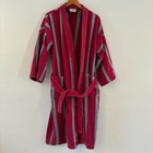 Vtg Bill Blass Terry Cloth Robe Burgundy Grey Striped Cotton Retro Loungewear
