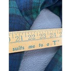 LL Bean flannel robe in a classic Black Watch tartan plaid pattern. Crafted from soft, 100% cotton flannel, this mid-length robe features a shawl collar, two front patch pockets, and a matching tie belt for a secure fit. The green and navy blue plaid offers a timeless look, perfect for lounging or staying warm during cooler mornings. Measurements: • Pit to Pit: 23" • Length: 46"