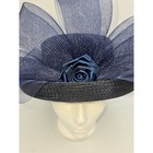 Unbranded Fascinator Hat Women OS Navy Blue Excellent Mesh Bow Rose Straw Boater