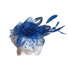 LR TABLE The Navy Blue Satin Fascinator Hat Clip is a stylish and elegant accessory designed for women looking to add a touch of sophistication to their outfit. Featuring a veil netting and feather accents, this headpiece is perfect for formal occasions like weddings or parties. The one-size design is versatile and suitable for various events during the summer and spring seasons. Made with a mesh fabric, this fascinator adds a touch of feminine charm to any ensemble, making it a must-have piece for any fashion-forward woman.