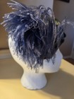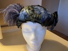 Suzanne couture Millinery blue/gray felt fascinator leaf & purple feather accent