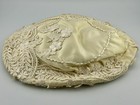 VTG 1950s Ivory Satin Lace & Faux Pearl Bridal Hat Cap Veil Base Floral Appliqué