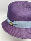 Loro Piana Purple straw fedora hat with light blue ribbon and bow